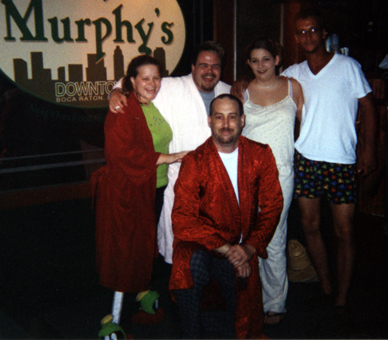 Labor Day Monday Sept 1 - 2003 has moved! it will now be at Holloway's Pub in the Royal Palm Plaza from 10:30pm to 2am! Yes you read that right. I know labor day is on a Monday and Holloway's is my Tuesday place. It means that for one week only Holloway's will have two nights of karaoke in a row. The party WAS supposed to be at Murphy's, but things change, and Mike Holloway was happy to host the party. No Cover (charge that is) CONTESTS! Prizes given for Naughtiest, Classiest & Goofiest sleep wear BRING YOUR TEDDY bear Kamikaze Karaoke with prizes Frank-E always buys drinks for ladies who dare to bare (he's just nice that way) Dancing in your PJ's. - all night long! Don't miss this outrageous party! More info for this year's party will be posted here as it becomes available, so keep checking back. I'm still trying to think of a good food or "munchies" to serve. I'd like to do smoores but I'm afraid they'd burn down the bar. Some said popcorn. Pizza is possible. Let me know what you think really captures the feeling of a pajama party. info@frank-e-oke.com See the area below for info on the last Pajama Party |